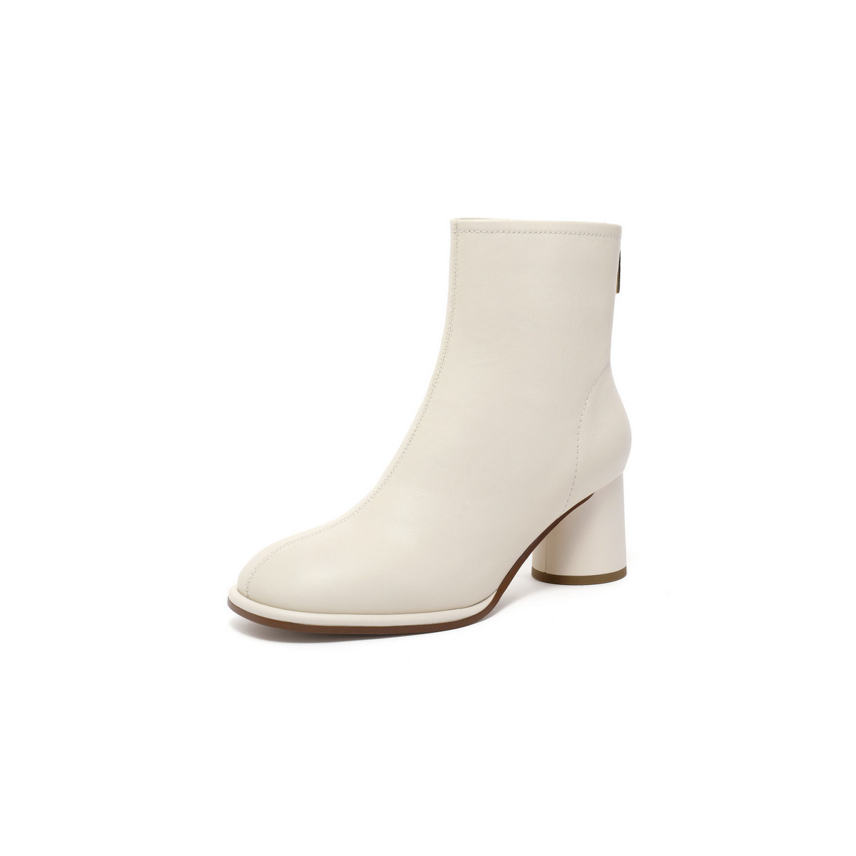 百丽女鞋气质通勤时装靴冬新加绒女靴子商场高跟短靴 979930