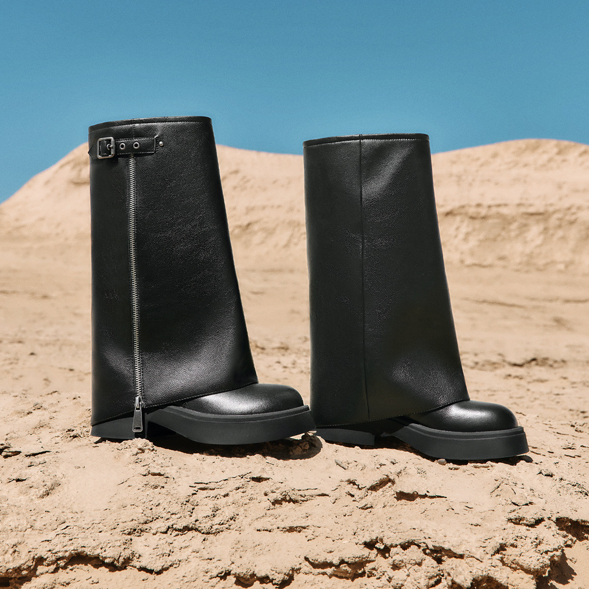 百丽长靴机车靴废土风骑士靴冬季女靴子长筒靴 277338