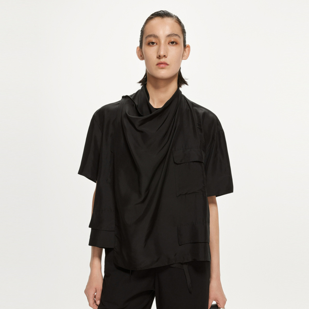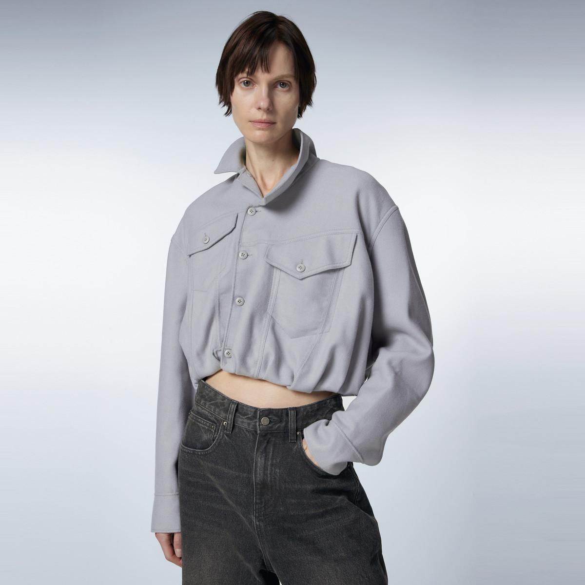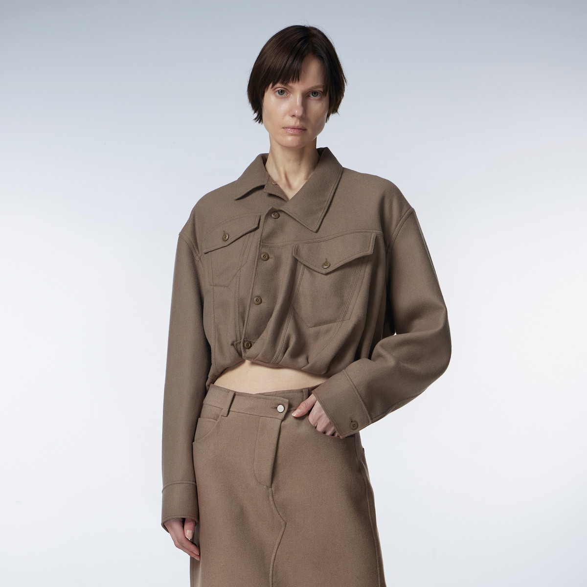 冬毛呢夹克宽松翻领不对称外套女 946187