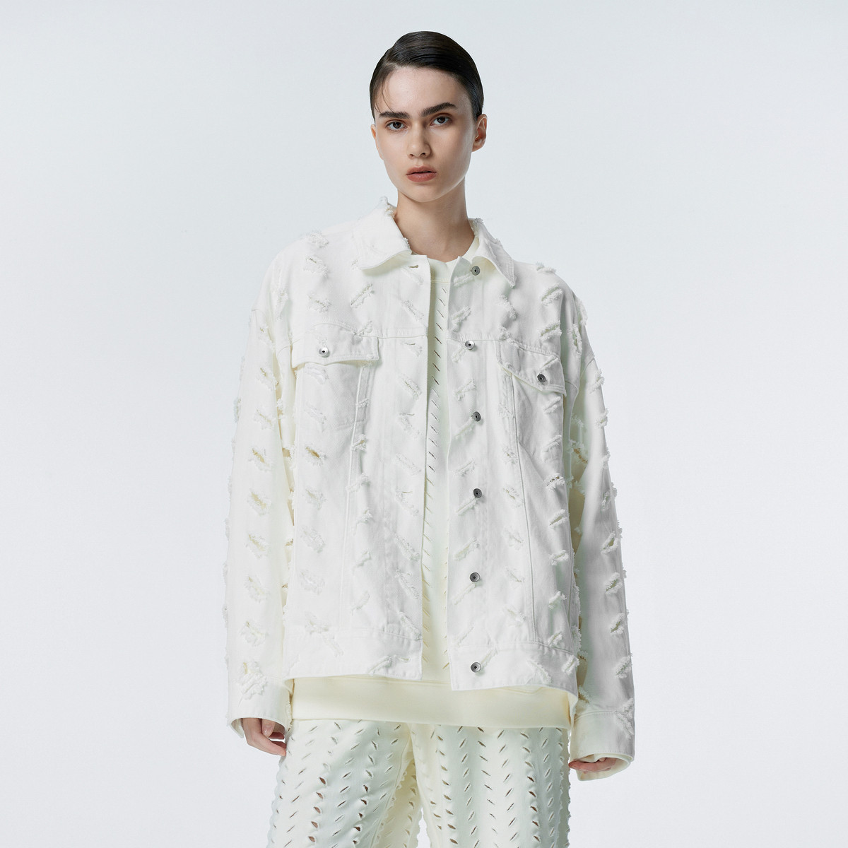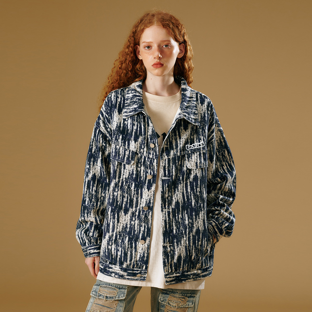 满印提花牛仔女式夹克男女同款2023秋季潮牌美式情侣装 934231