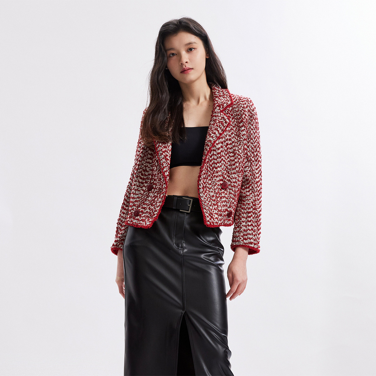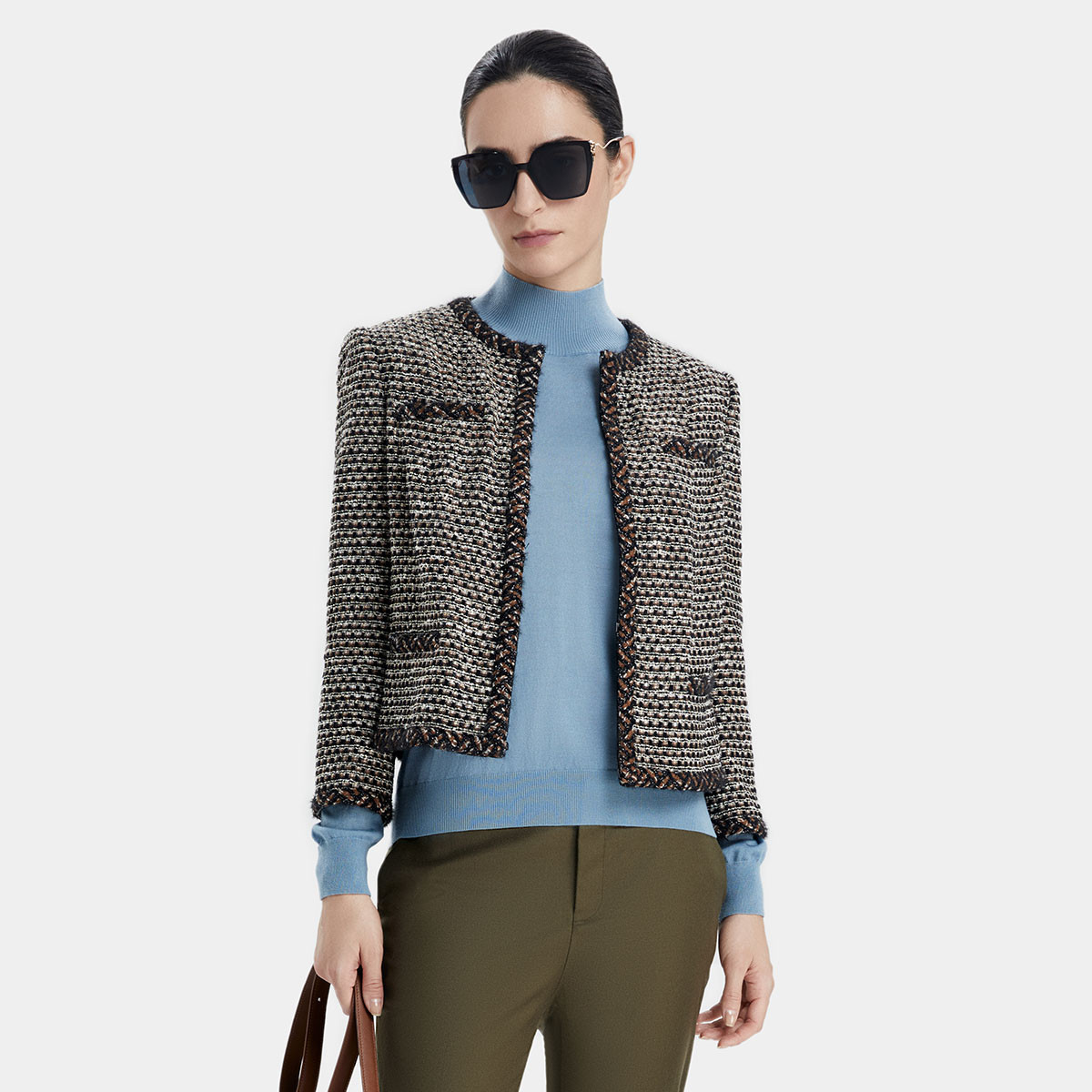 宝姿女装秋季意大利进口粗花呢短夹克 236490
