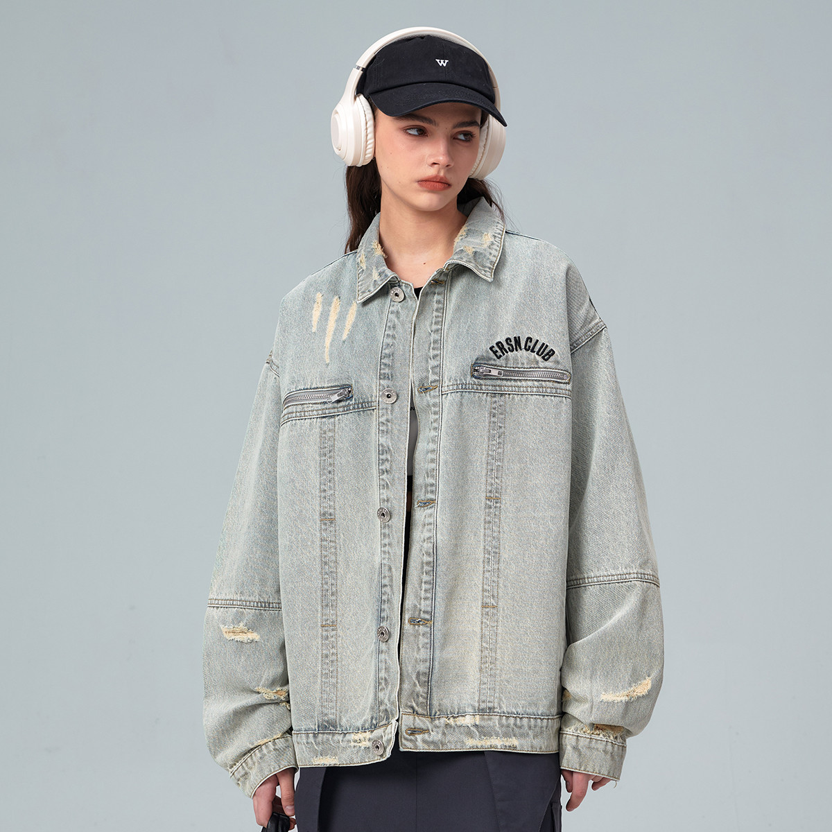 牛仔做旧夹克美式潮牌水洗情侣装 862935