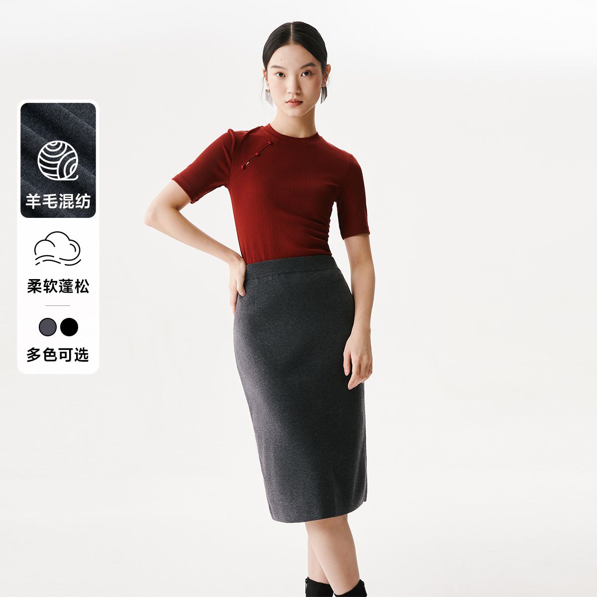 针织半身裙高腰直筒开叉简约通勤百搭 643793