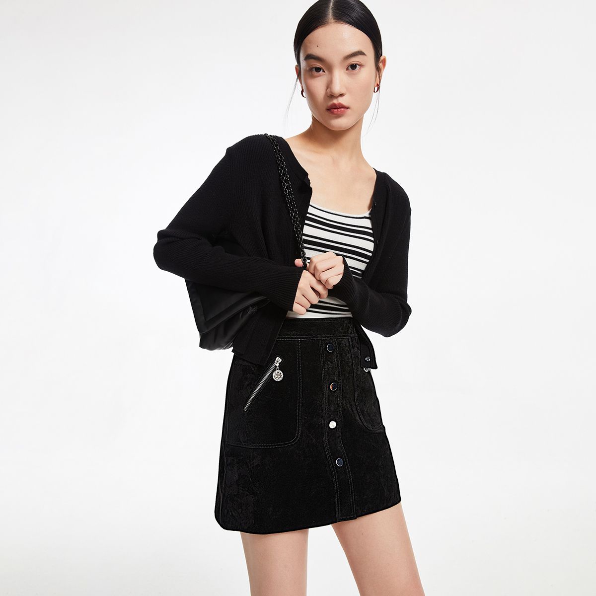 旗下安娜蔻系列静奢小香风通勤肌理感小A裙短裙半身裙女夏季 155276
