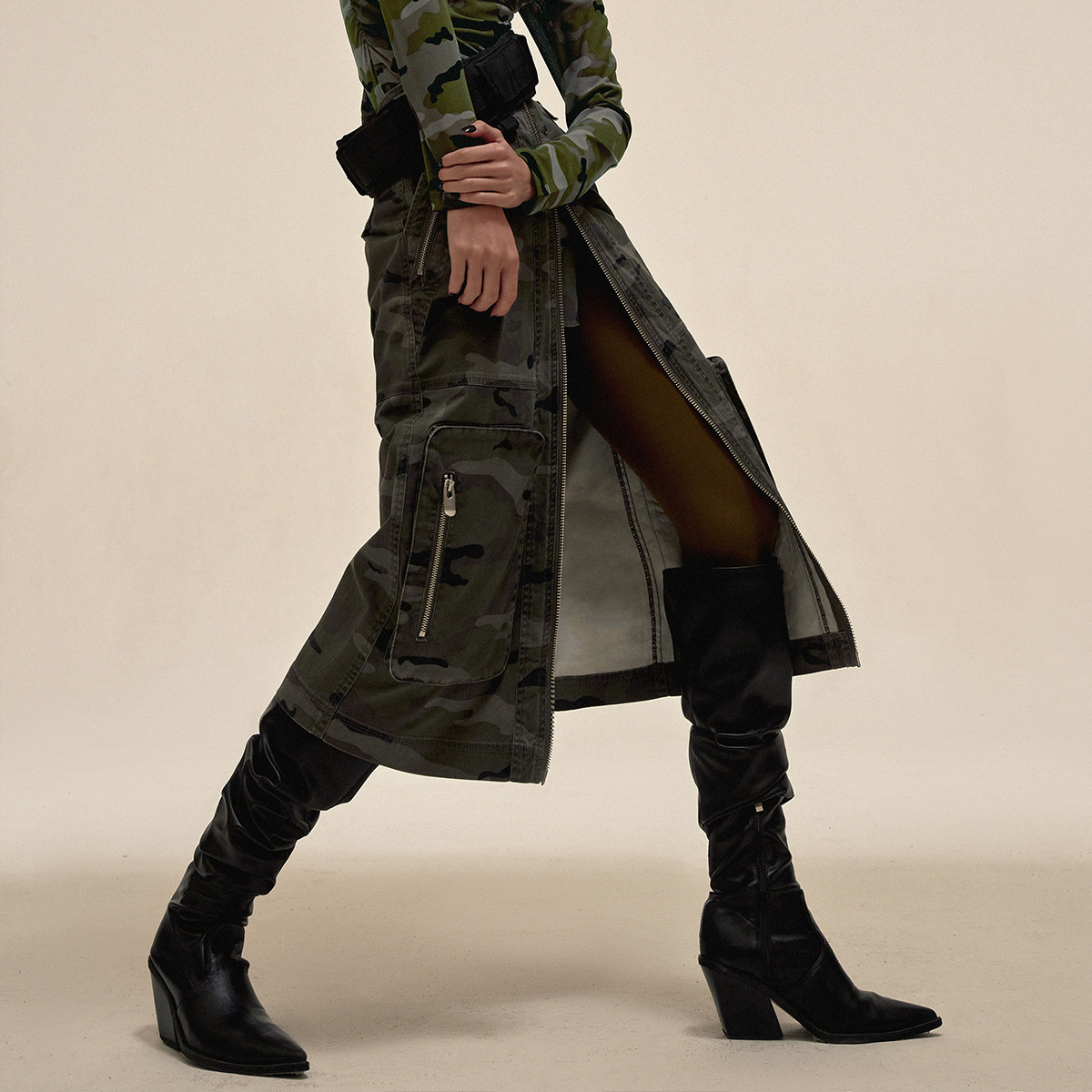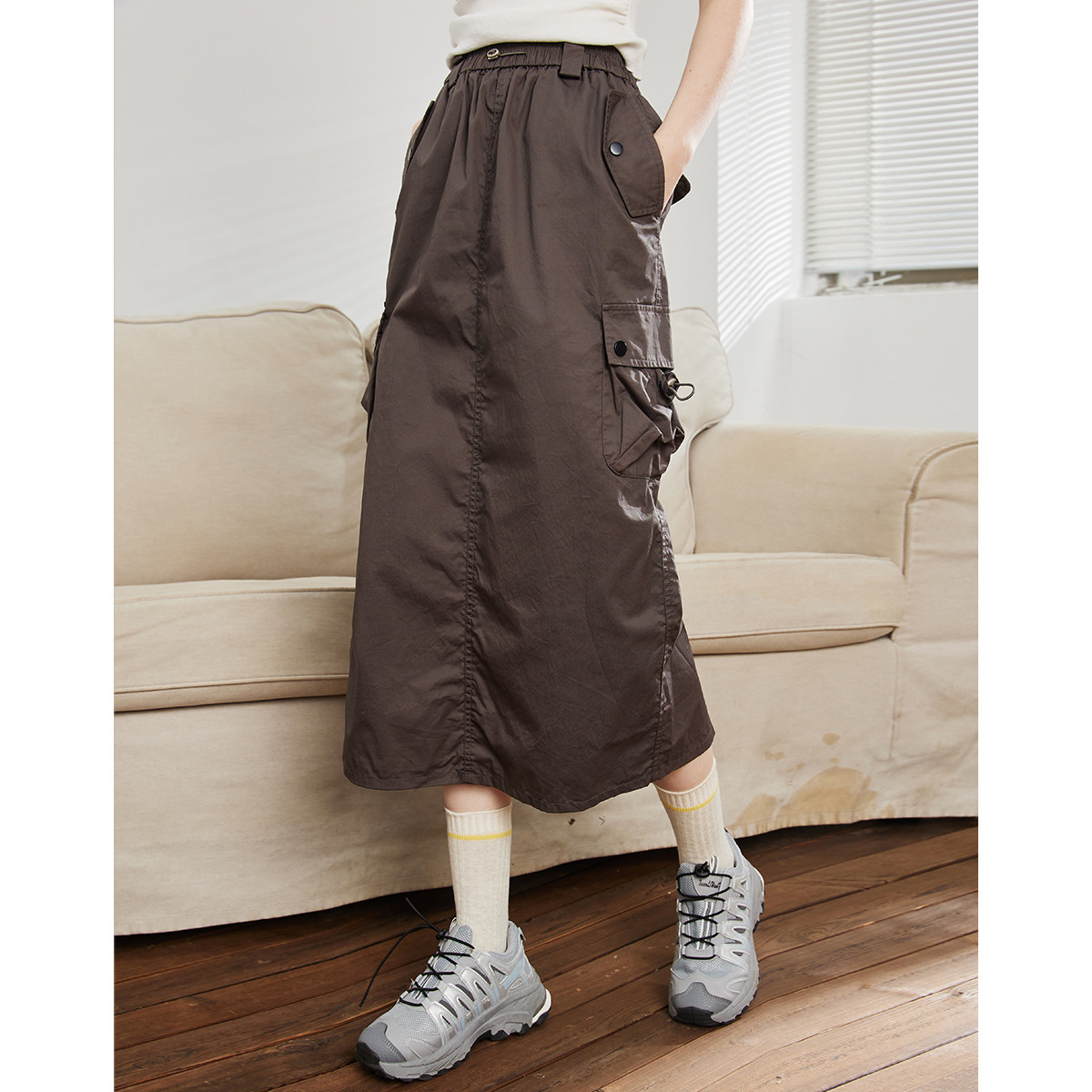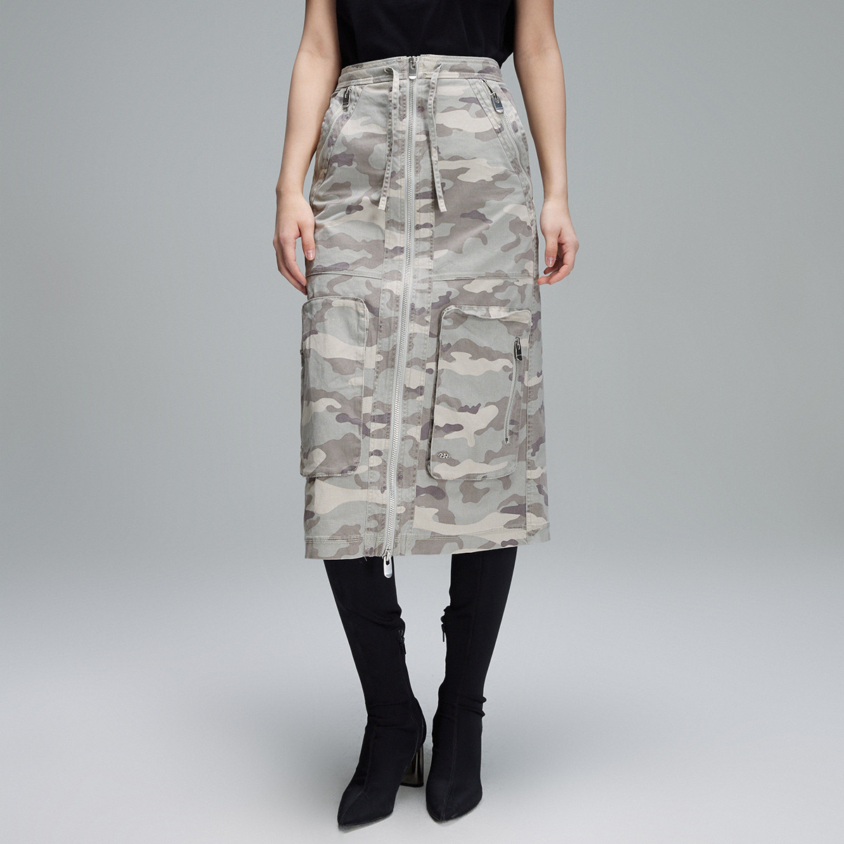 【大口袋装饰】春季休闲双拉链中长款半身裙女 978074