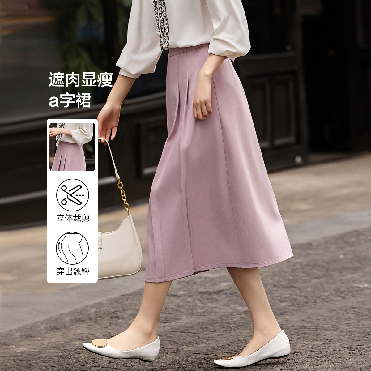 【一条搭所有】春秋新中高腰a字半裙气质半身裙女中长款 755009