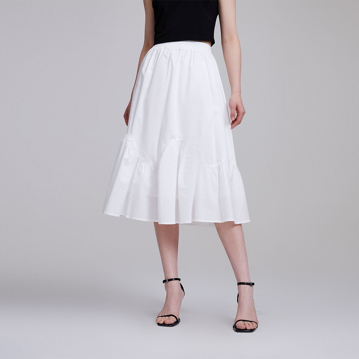 半身裙A摆松紧腰褶皱荷叶边简约优雅气质 273745