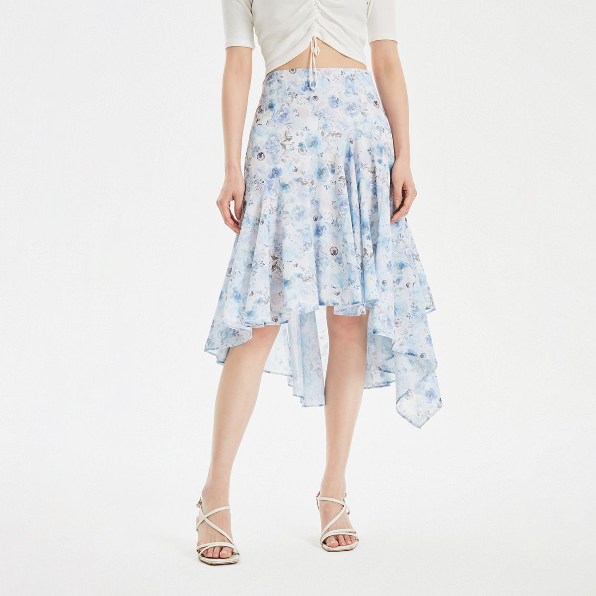 【雪纺不规则裙摆】春夏专柜款碎花高腰韩系半身裙中长裙百搭时尚 652177