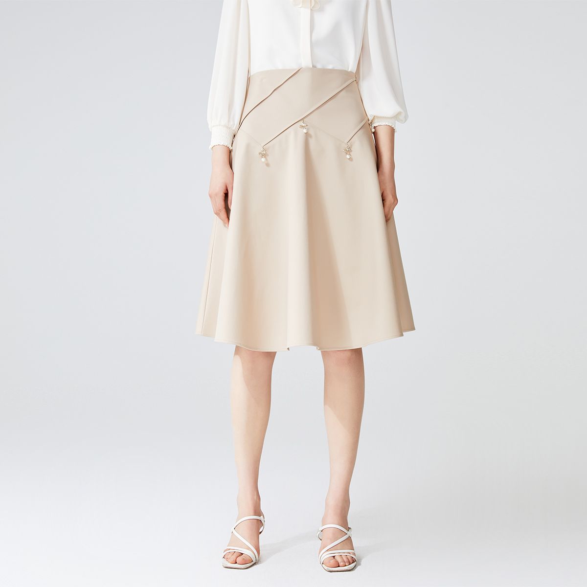 【立体蝴蝶仿珍珠装饰】春夏专柜同款高腰显瘦半身裙气质百搭时尚 014865