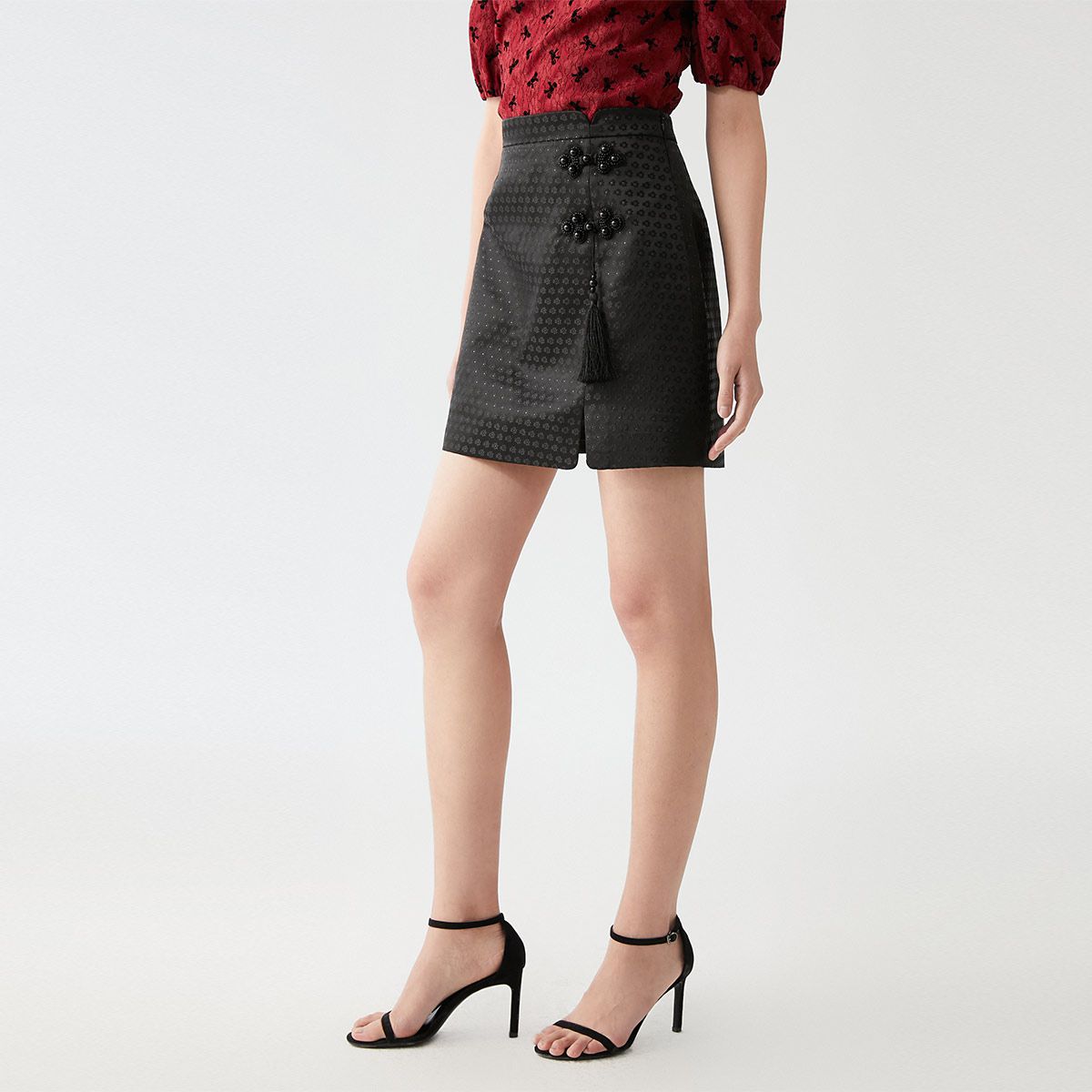 【新中式盘扣流苏】春夏商场同款暗花短裙半身裙气质百搭时尚 610641