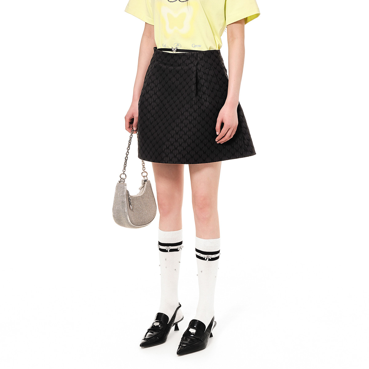 地素 夏秋专柜暗纹蝴蝶提花半裙A字裙 004811
