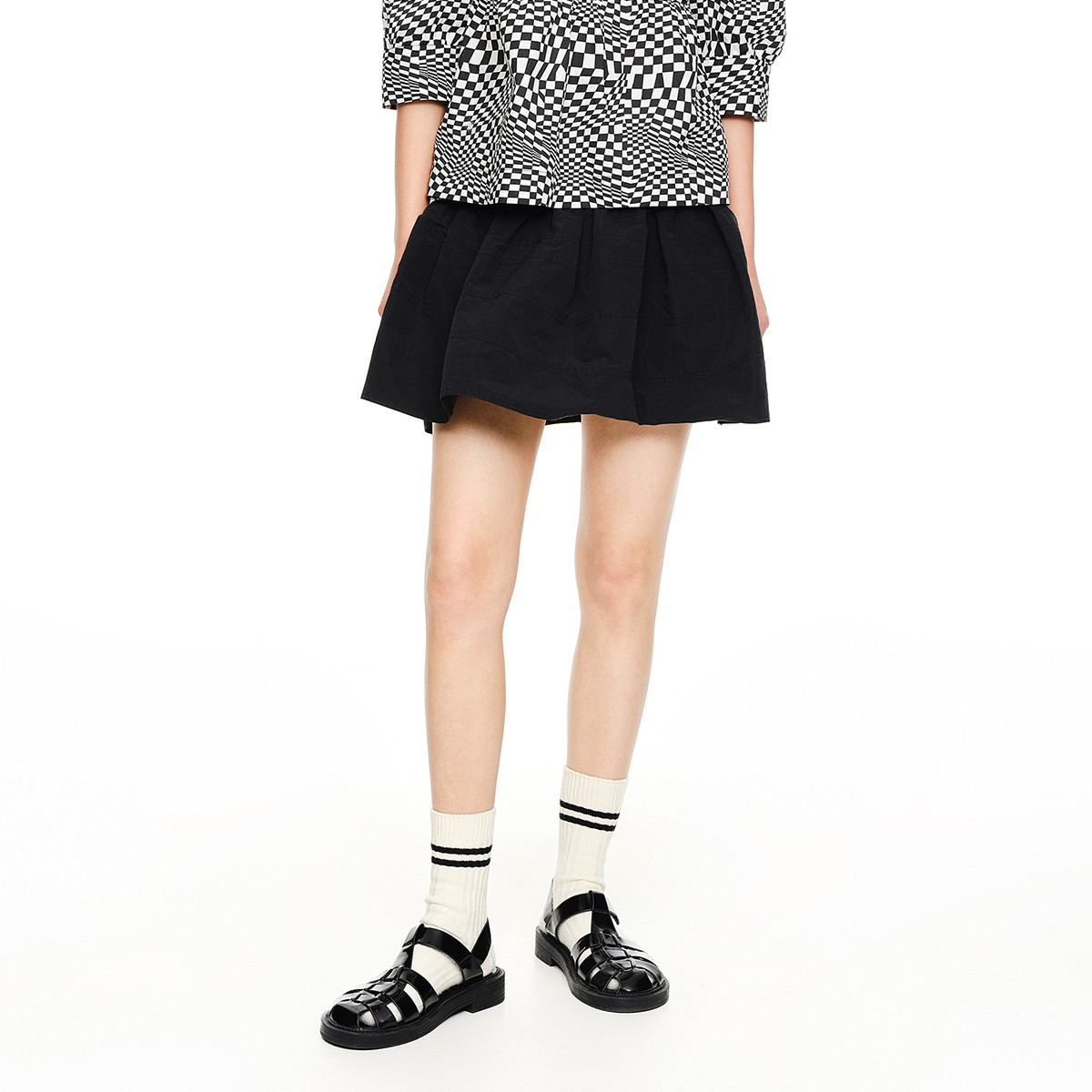 地素夏秋季甜酷少女日系法式高腰宽松半身短裙 082891