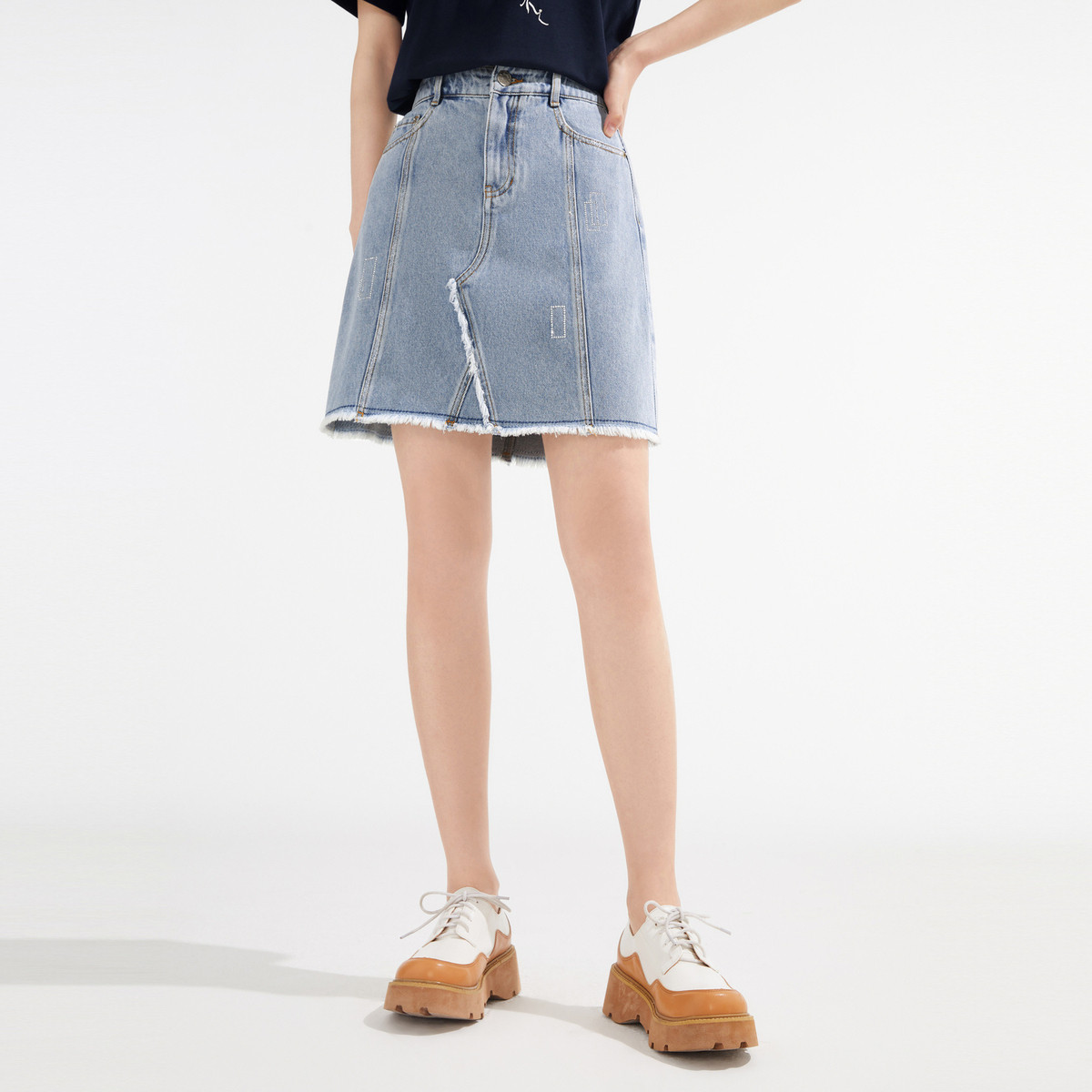 地素牛仔拼接半裙夏季运动休闲双腰头不可拆牛仔裙 178635