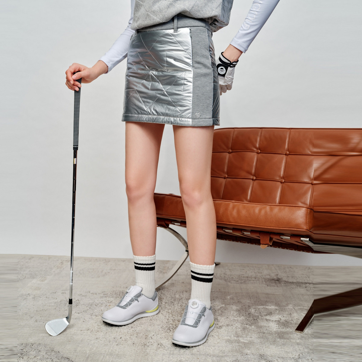 【小熊高尔夫】半截裙女短裙半身裙高腰拼接绗棉新雪丽3M棉 843393