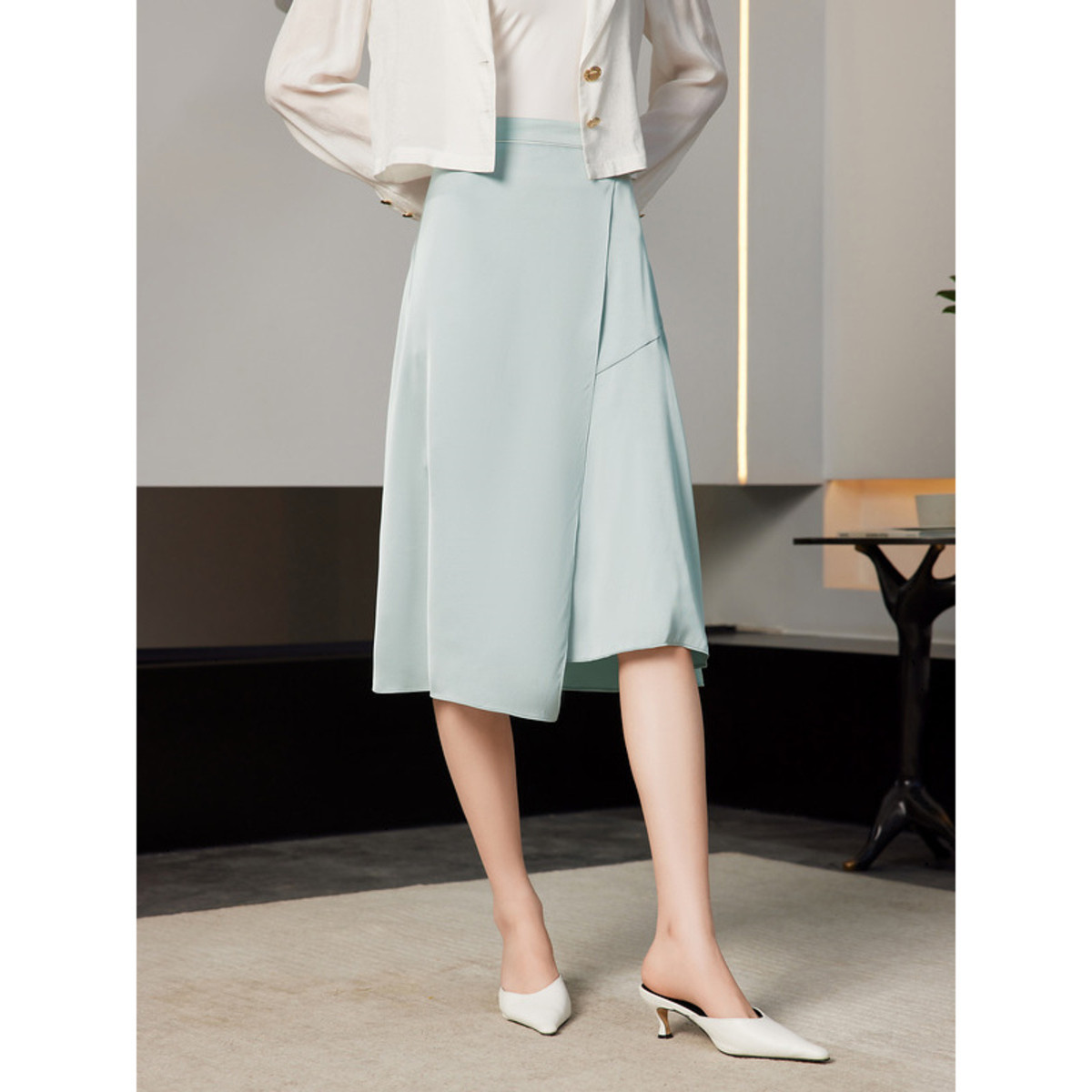 【夏日正当时简约都市系列】夏一粒扣不规则半身裙子女 711681
