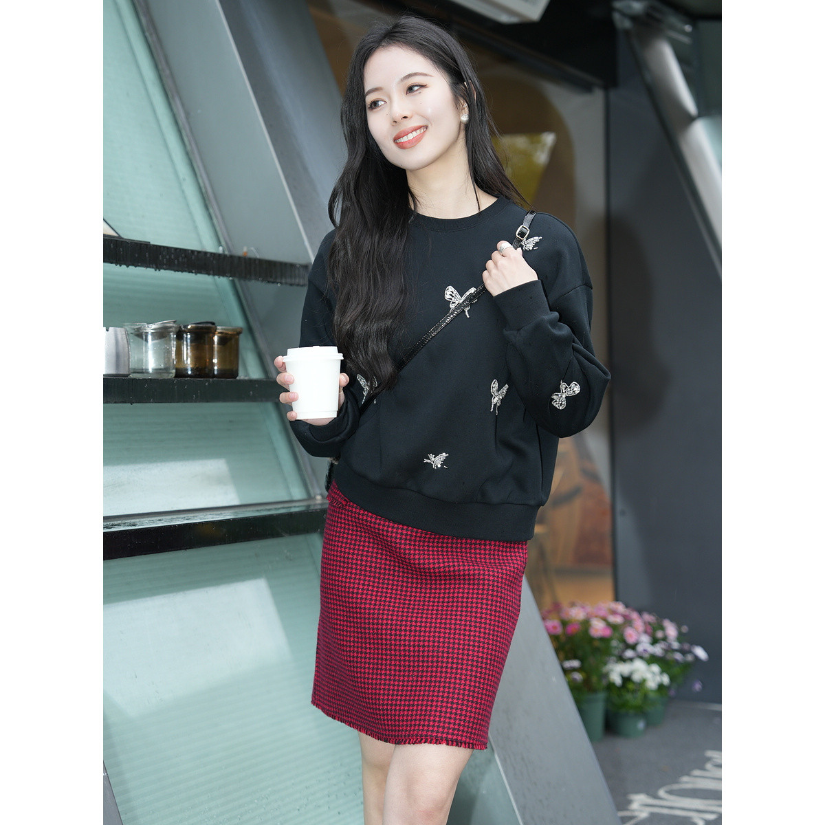 玖姿旗下安娜蔻系列洋气小香风蝴蝶纱短款半身裙女秋季 589900