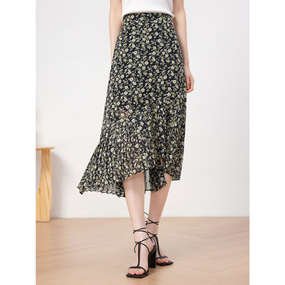 商场同款浪漫印花垂坠不规则褶皱气质半身裙女 867276