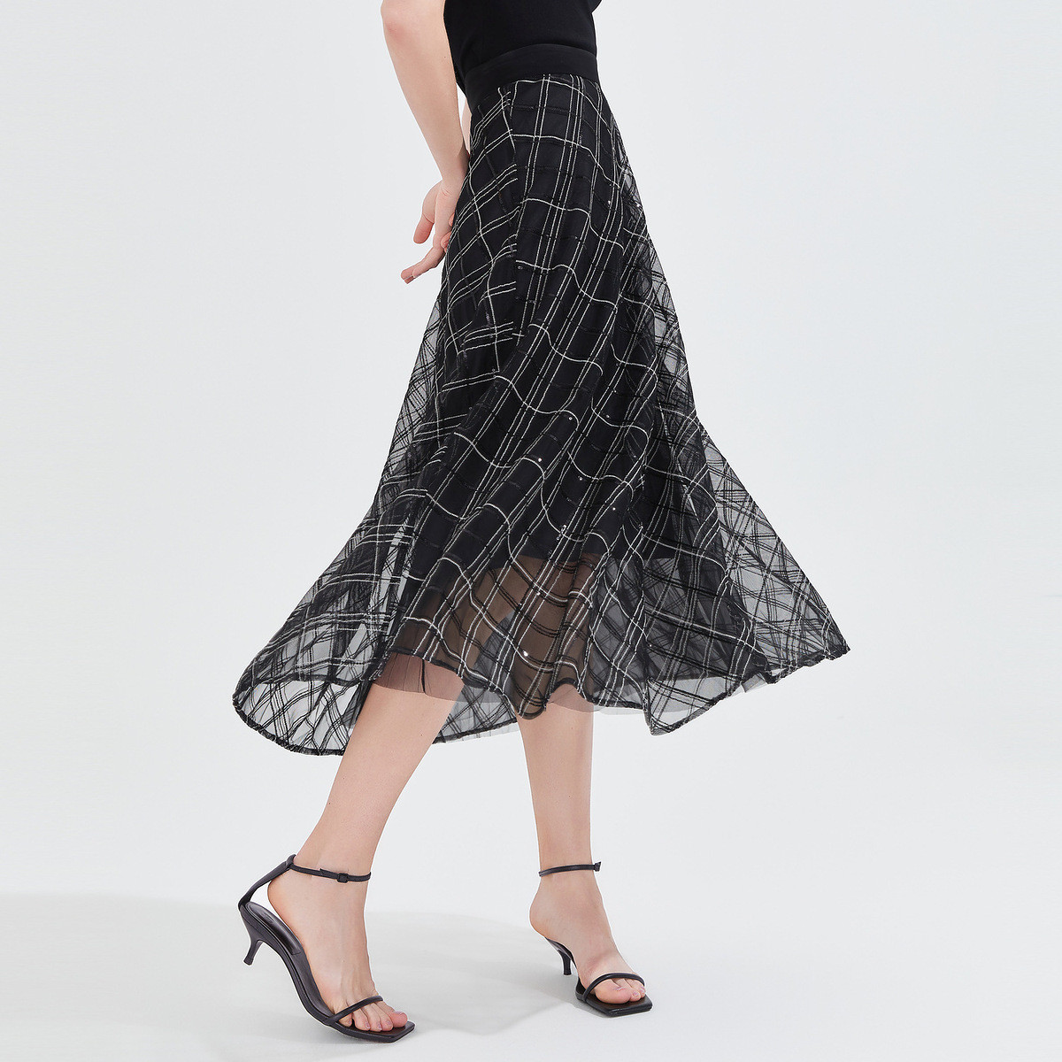 玖姿商场同款夏季时尚通勤气质亮片绣伞裙半截裙 578316
