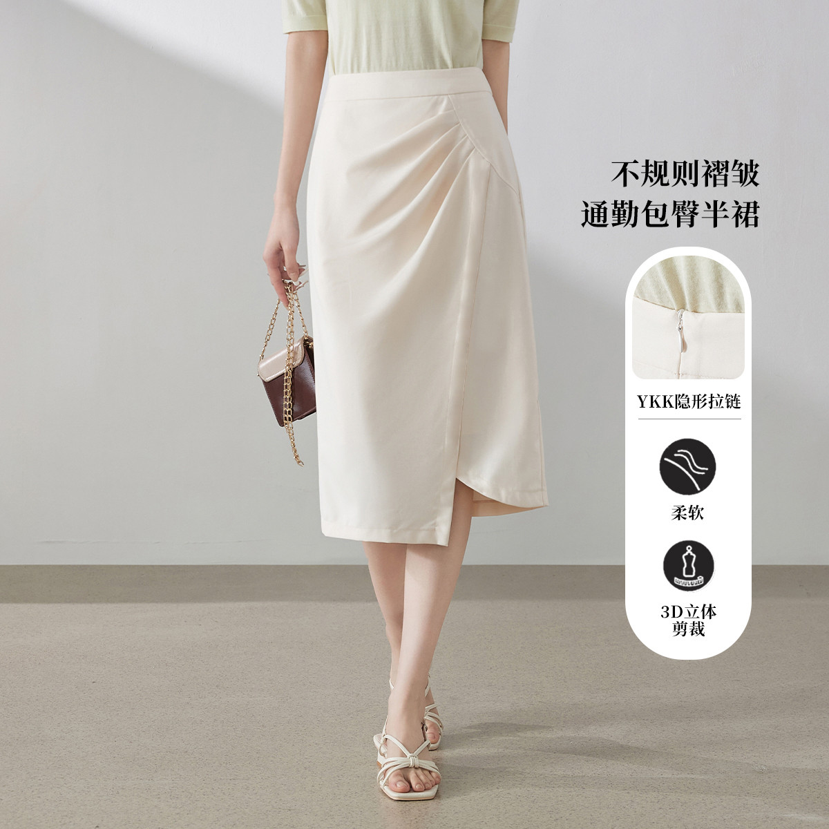 【不规则褶皱设计】精致都市OL风设计感优雅气质半身裙 206977