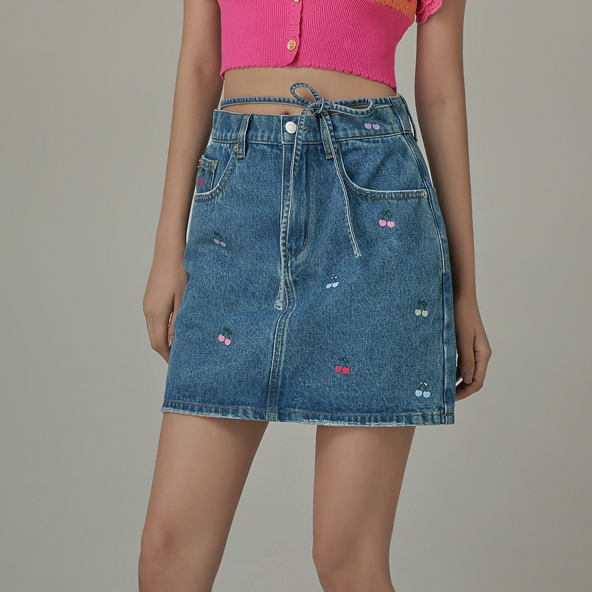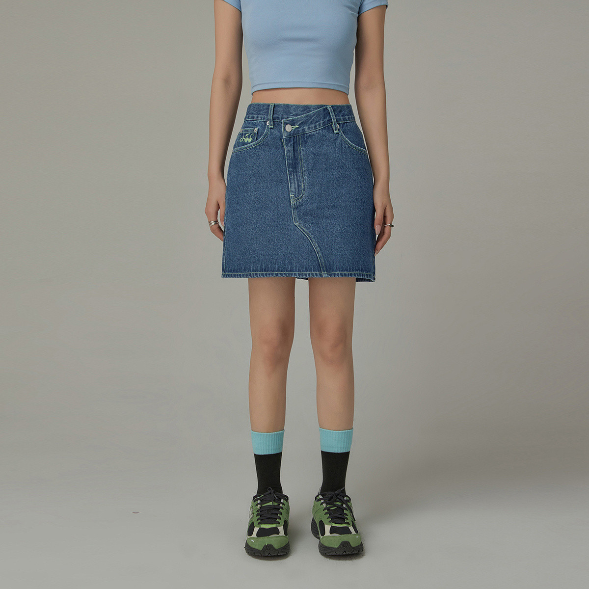CHUU绣花牛仔半身裙女士秋高腰a字短裙子 024531