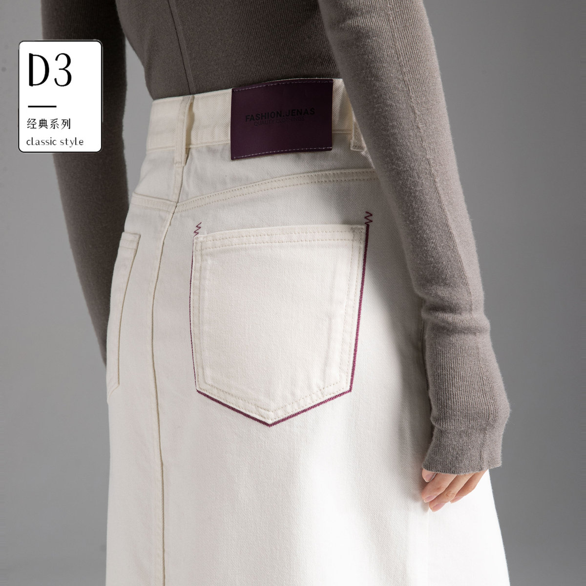 【拼接高腰】夏季时尚通勤风毛边牛仔半身裙女 991130