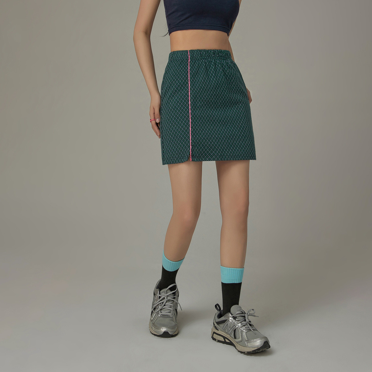 CHUU格纹开叉半身裙女秋百搭松紧腰A字短裙子 571475