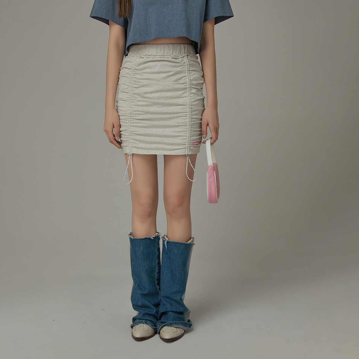 CHUU抽绳褶皱斜腰半身裙女士秋a字短裙子 645203