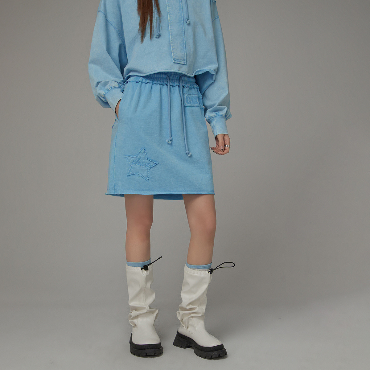 CHUU高腰牛仔半身裙女秋小个子系带a字裙子 907923