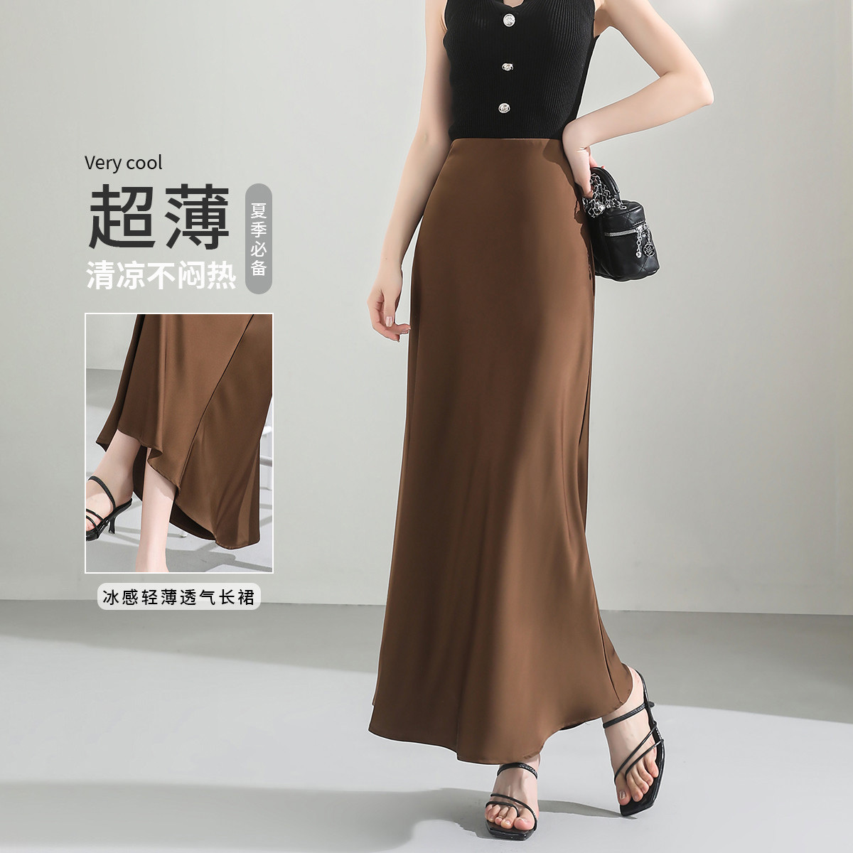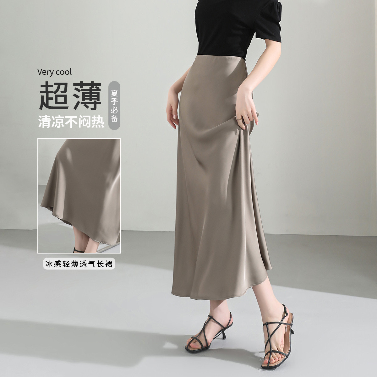 {含仿醋酸}夏季透气薄款裙子仿醋酸质感半身裙缎面气质中长裙 198559