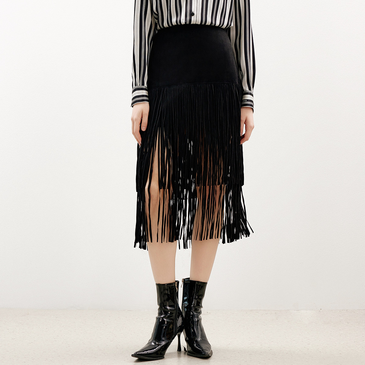 春秋款气质通勤流苏飘逸感女式半裙 097049