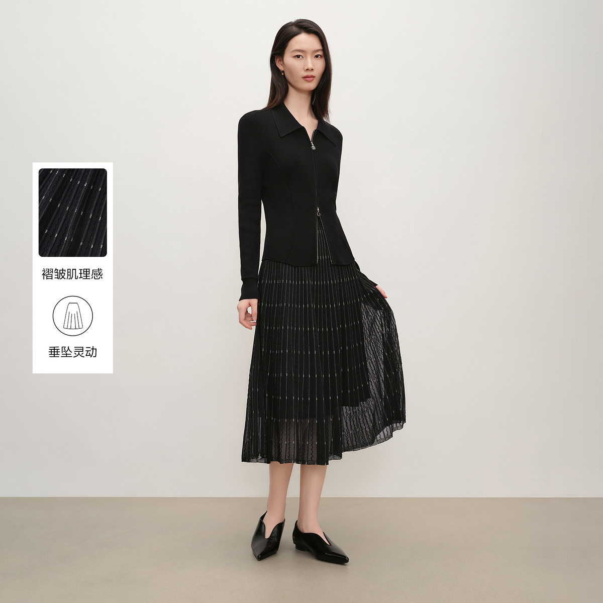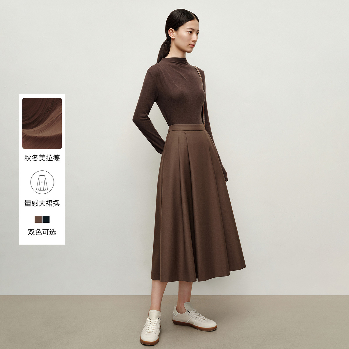玖姿旗下安娜蔻系列简约经典优雅风伞裙TR半身裙长裙女秋季 038284