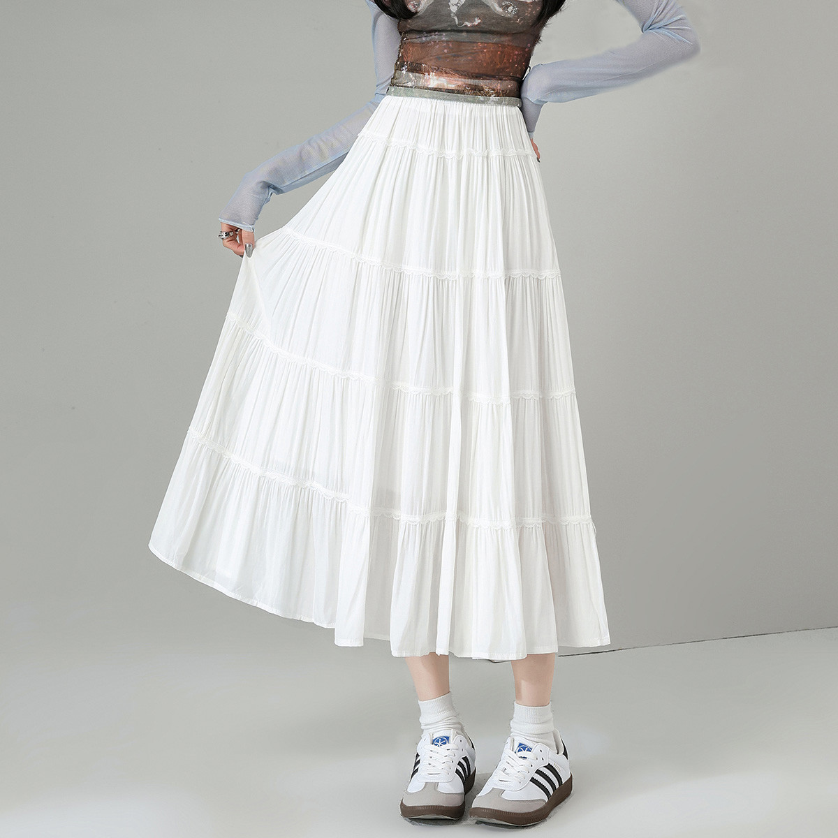 春夏款法式温柔风百搭日常半身裙垂感褶皱中长款高腰蓬蓬裙半截裙 389835