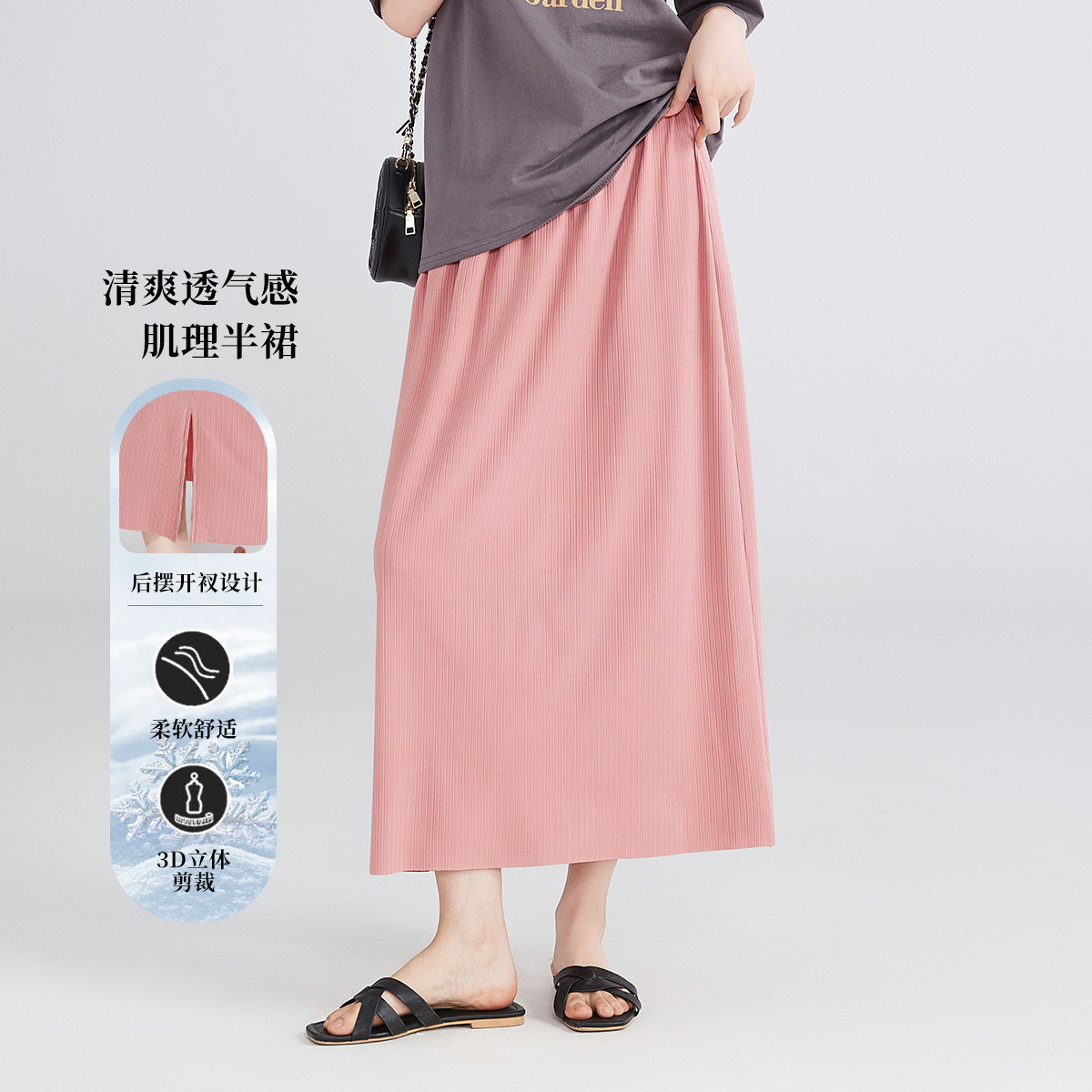 【清新百搭肌理裙】飘逸垂顺纯色高腰开叉半身裙休闲显瘦中长裙 382145