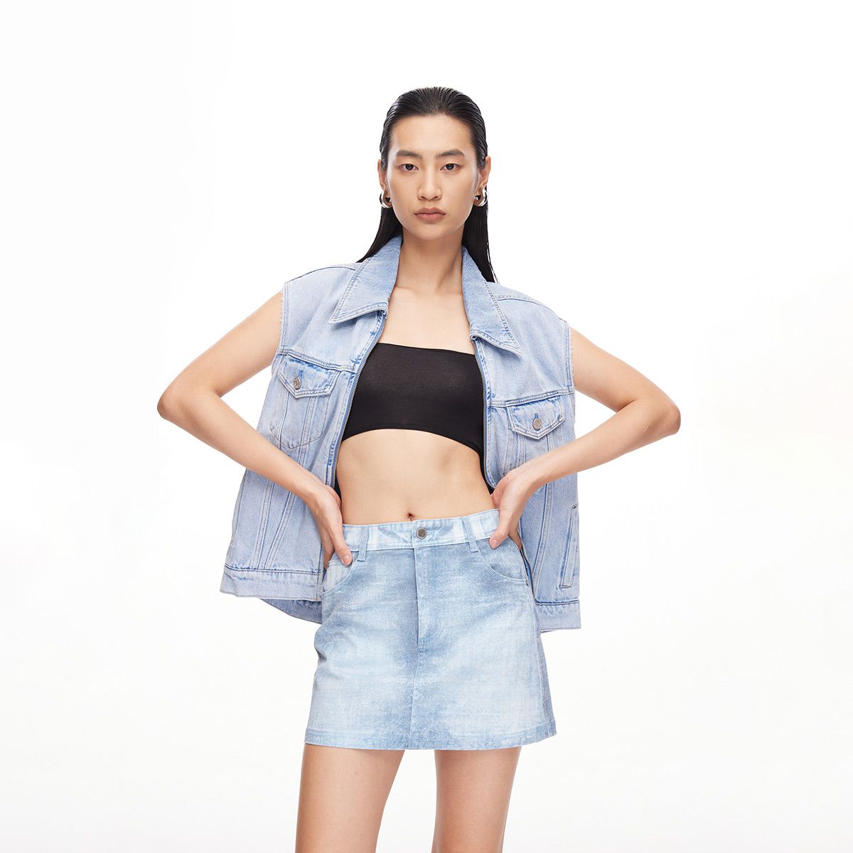 【做旧水洗】夏季含莱赛尔高腰做旧水洗短款半身裙女 338714