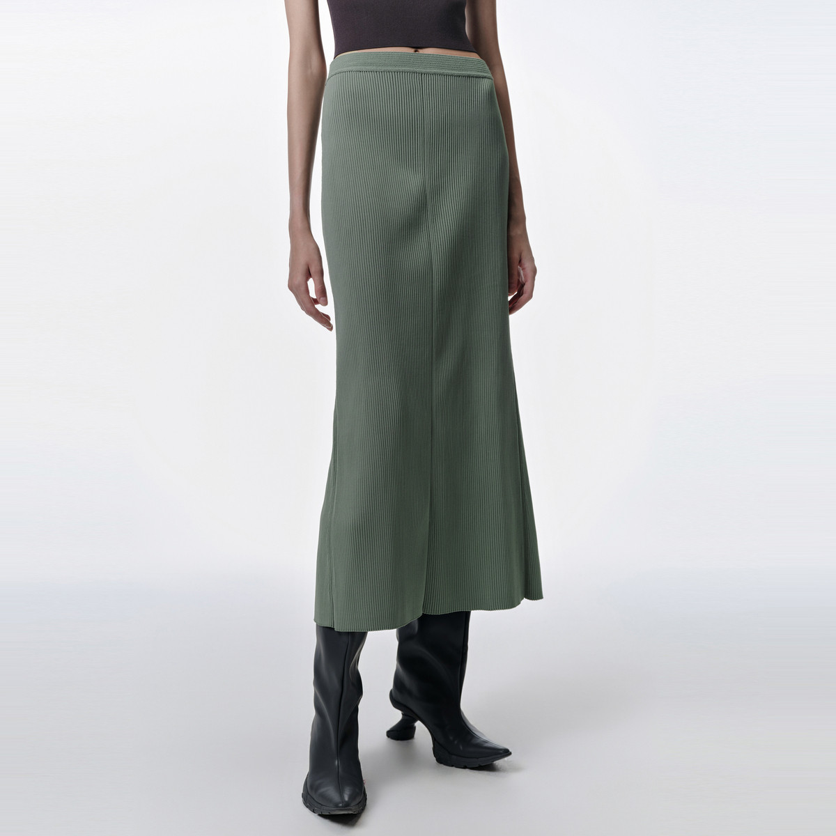 【步步生花】春秋优雅的律动法式A字藏肉气质苹果绿中长半身裙女 848129
