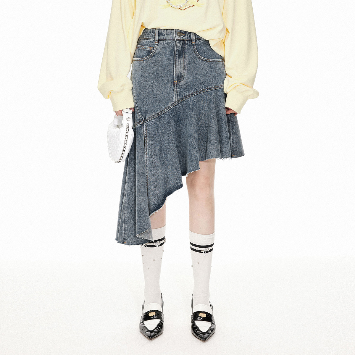 地素牛仔半裙春秋不规则设计感棉质半身裙女 033867