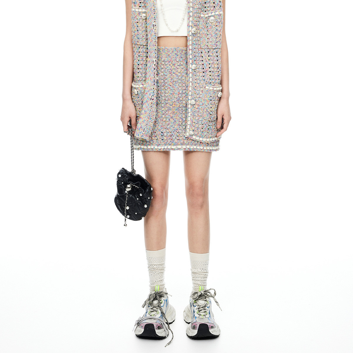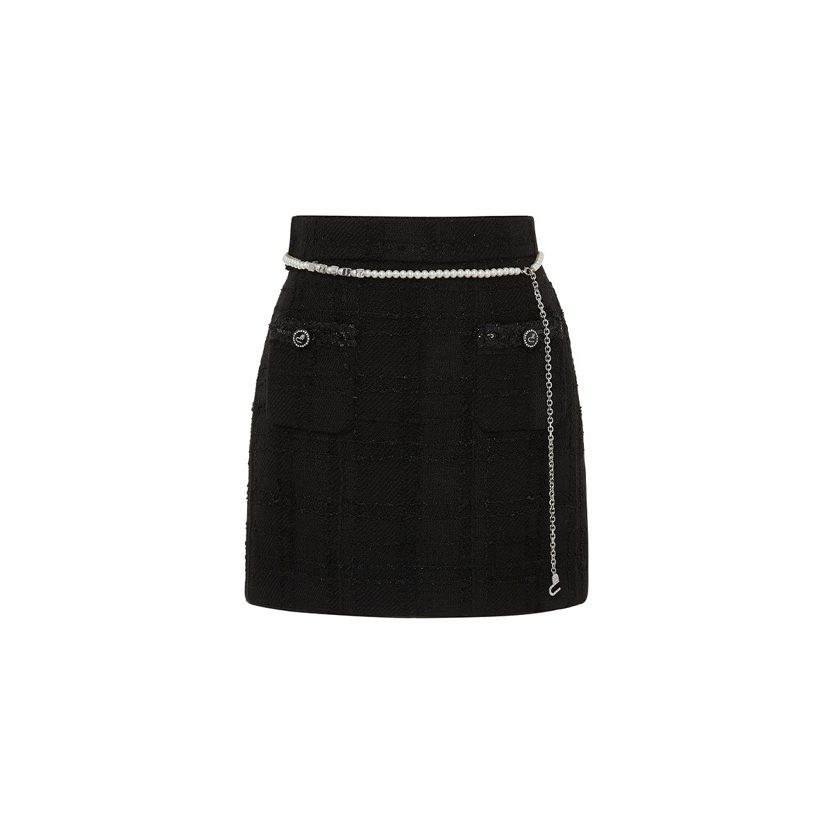 地素粗花呢织带半裙小香风珍珠腰链搭配设计短裙女 993803