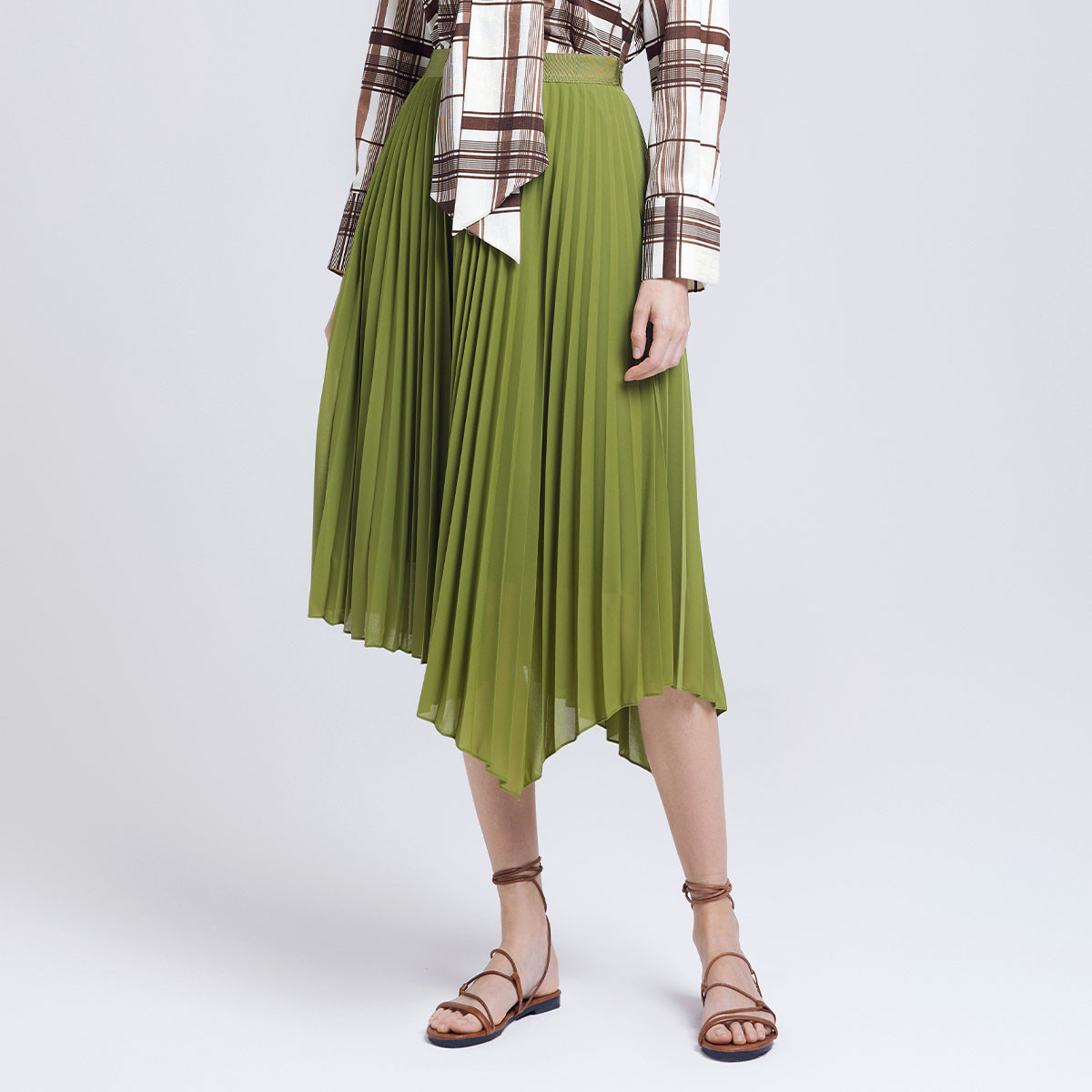 PORTS宝姿女装春季时尚森林绿不对称百褶裙LD8N007PWP064 792842