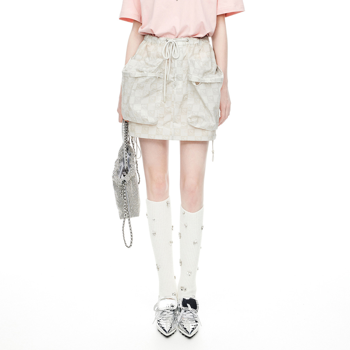 地素泡泡半裙夏季运动风大口袋暗纹印花短裙女 504715