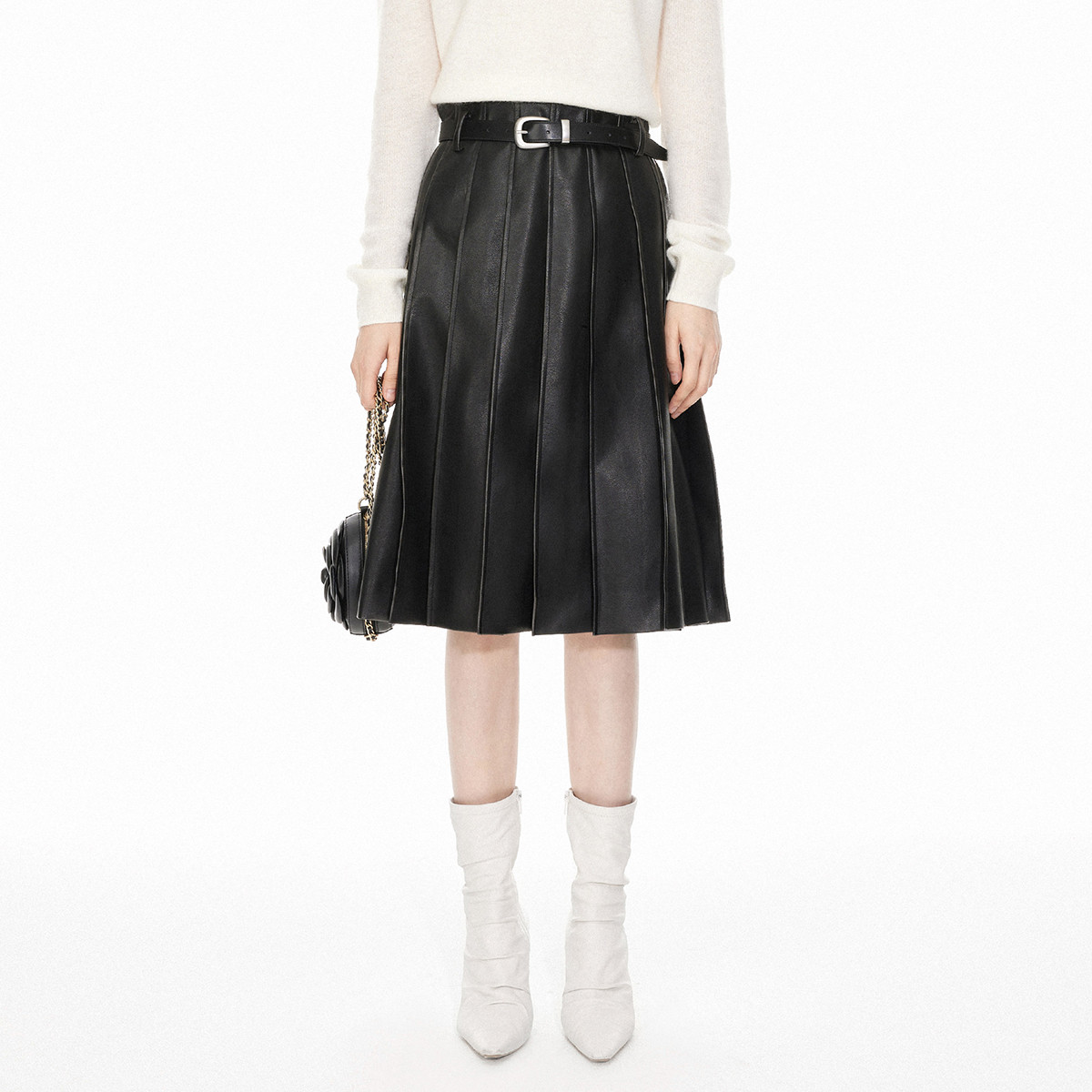 地素环保皮半裙春季专柜精致感复古摩登百褶裙女 320139