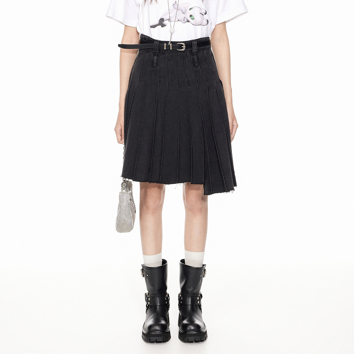 地素牛仔百褶裙春专柜不规则下摆毛边半裙短裙女 287179