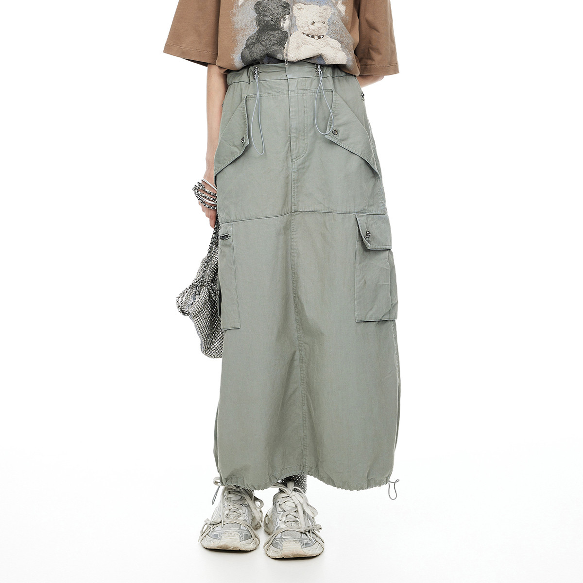 地素工装半裙夏季摩紧腰抽绳长裙女 395723