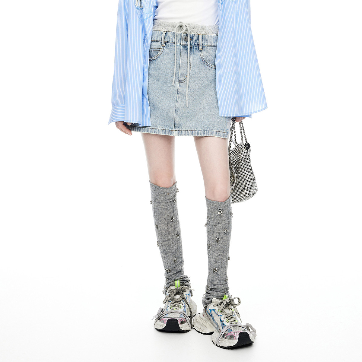 地素牛仔拼接半裙夏季运动休闲双腰头不可拆牛仔裙 178635
