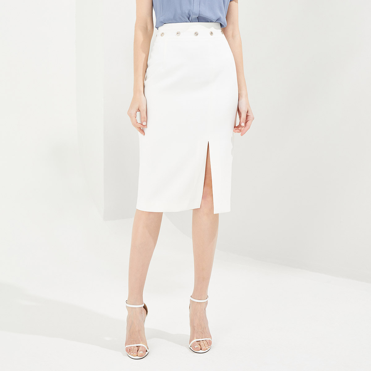 [优雅职场]夏季OL气质带钻汽眼开衩包臀裙半身裙商场同款一步裙 494431