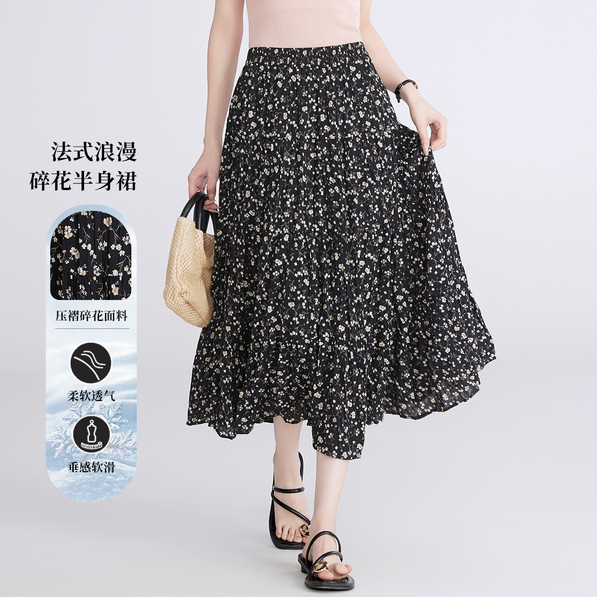 【法式碎花压褶蛋糕裙】小清新薄款松紧腰大裙摆半身裙子 675201