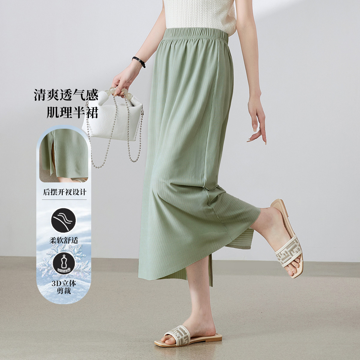 【清新百搭肌理裙】飘逸垂顺纯色高腰开叉半身裙休闲显瘦中长裙 410817