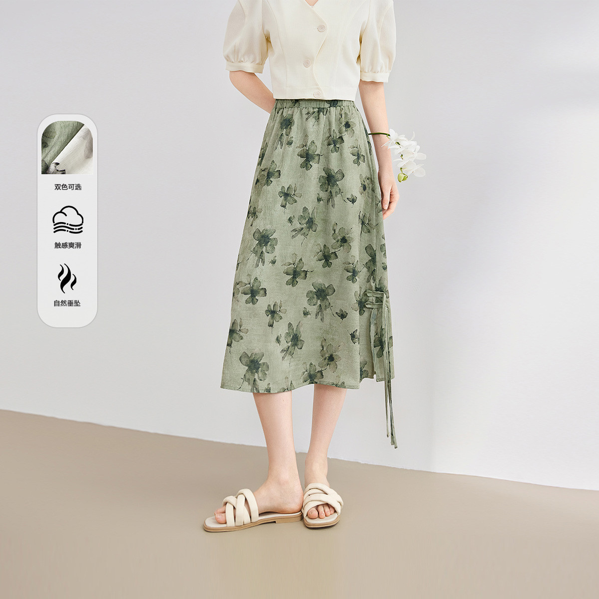 【2024夏季】优雅新中式晕染高腰半身裙女抽绳中长裙国风裙子 688724