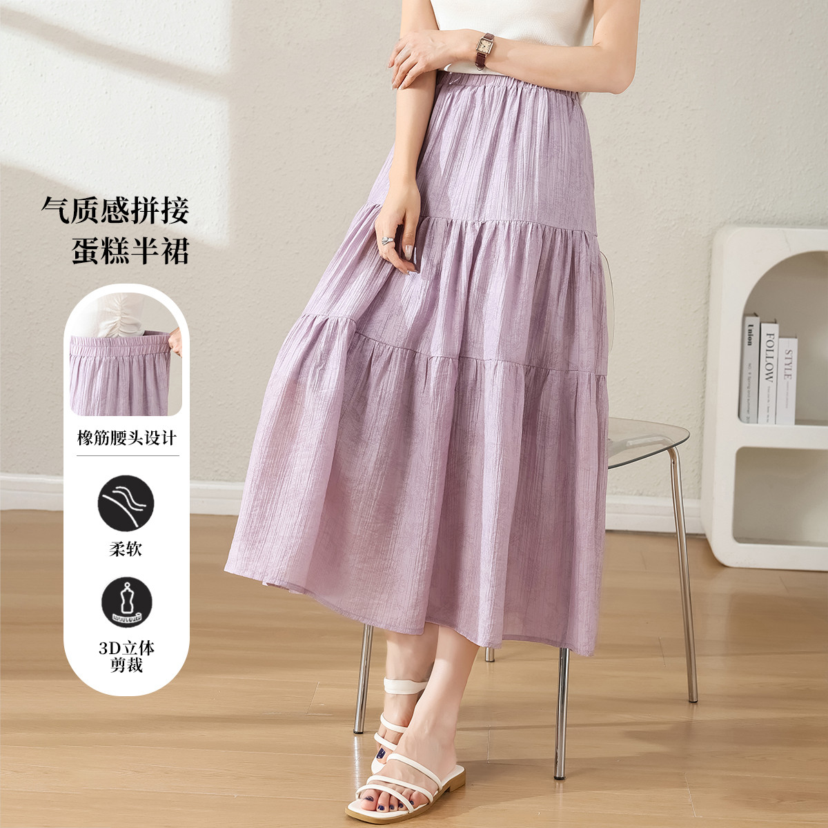 【2024春夏款】休闲百搭高腰显瘦文艺气质纯色伞裙长裙半身裙 488657