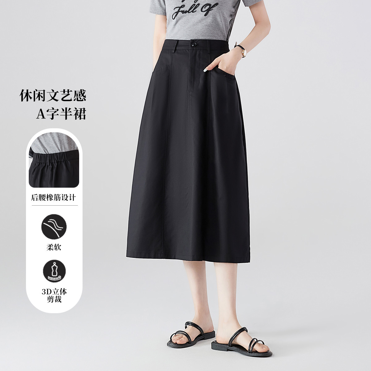 【优雅伞裙】夏季通勤中腰裙子简约气质半身裙女中长款 110360