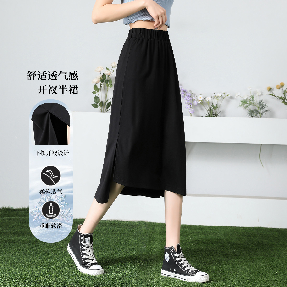 【柔软亲肤】不规则裙长侧开叉半身裙 简约纯色百搭过膝裙女款 068865